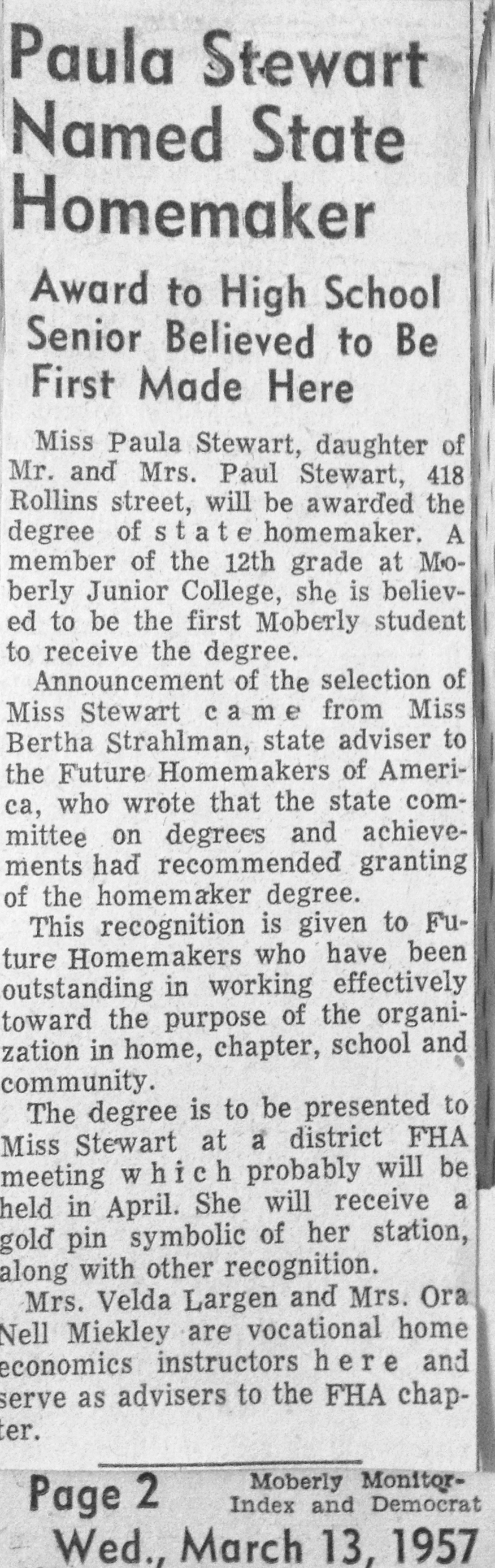 This entry was posted in Paula Stewart Brennan and tagged newspaper clipping. Bookmark the permalink.