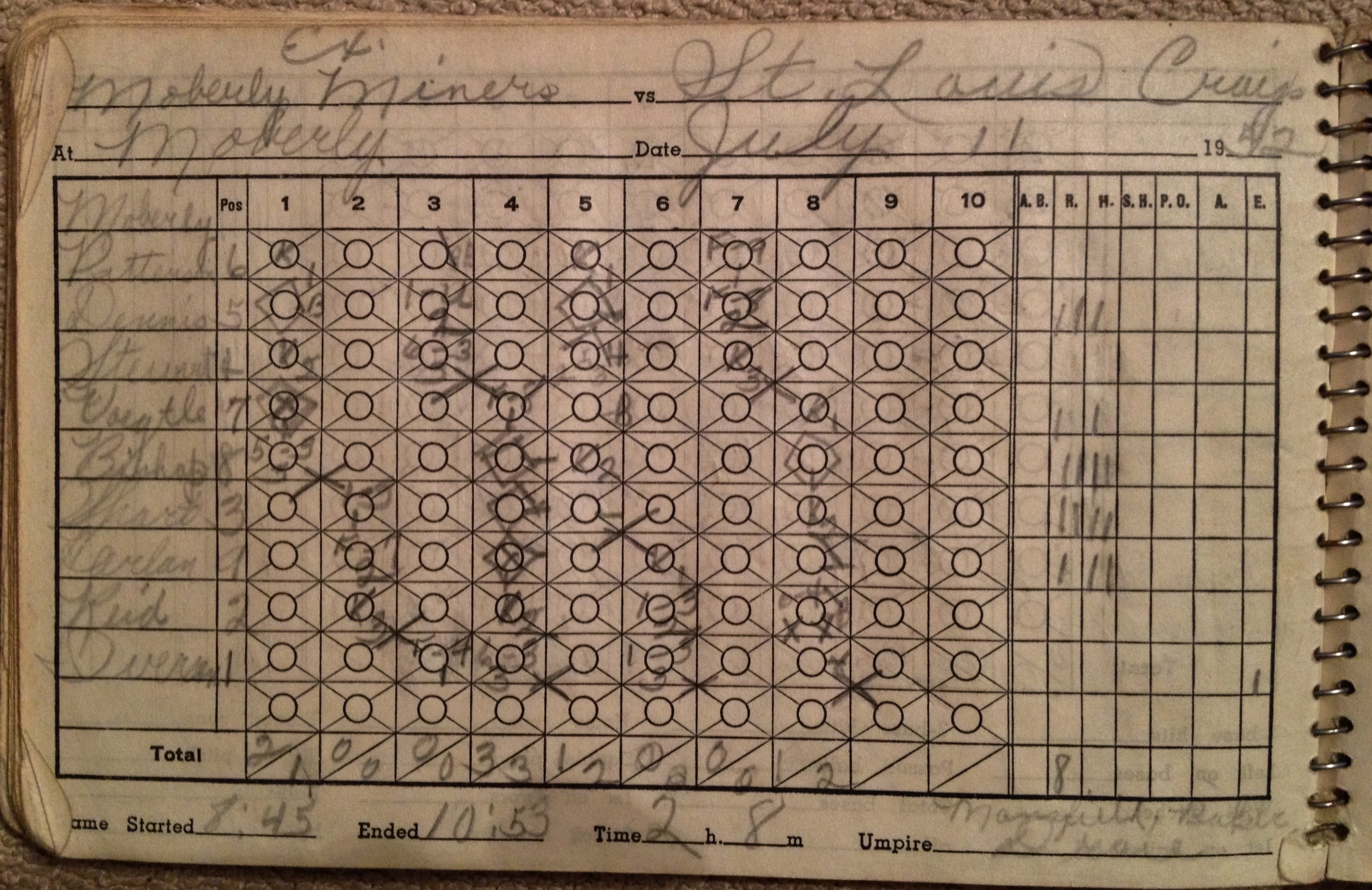 Paula’s stat book for Paul’s baseball